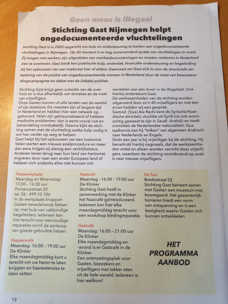 Lees hier het artikel! Stichting Gast helpt al vijfentwintig jaar kwetsbare ongedocumenteerden